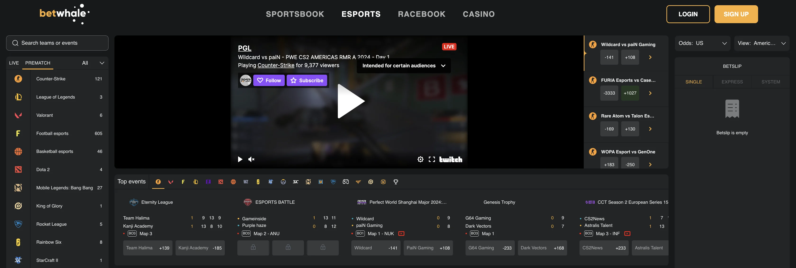 Esports Betting at Betwhale Sportsbook – entertainment for streamers